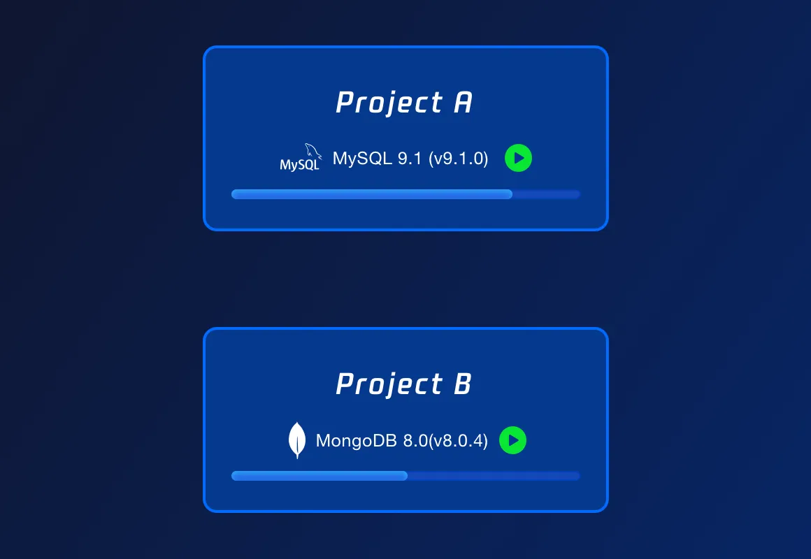 Aumento dell'efficienza di sviluppo, ideale per supporto multi-progetto: l'esecuzione simultanea di più istanze fornisce un ambiente di database necessario a ciascun progetto, senza bisogno di frequenti cambi o migrazioni.